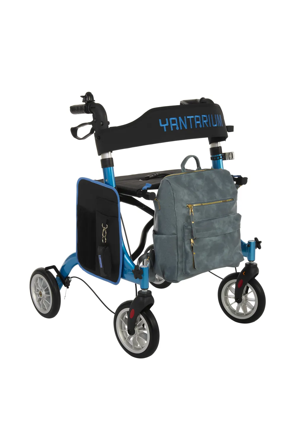 Der AT51046(Y) Rollator blau Yantarium ist ein vierrädriger, faltbarer Aluminium-Rollator zur Unterstützung von Personen mit eingeschränkter Gehfähigkeit. Er dient der sicheren Fortbewegung im Alltag und ist für die Nutzung durch eine Person vorgesehen.